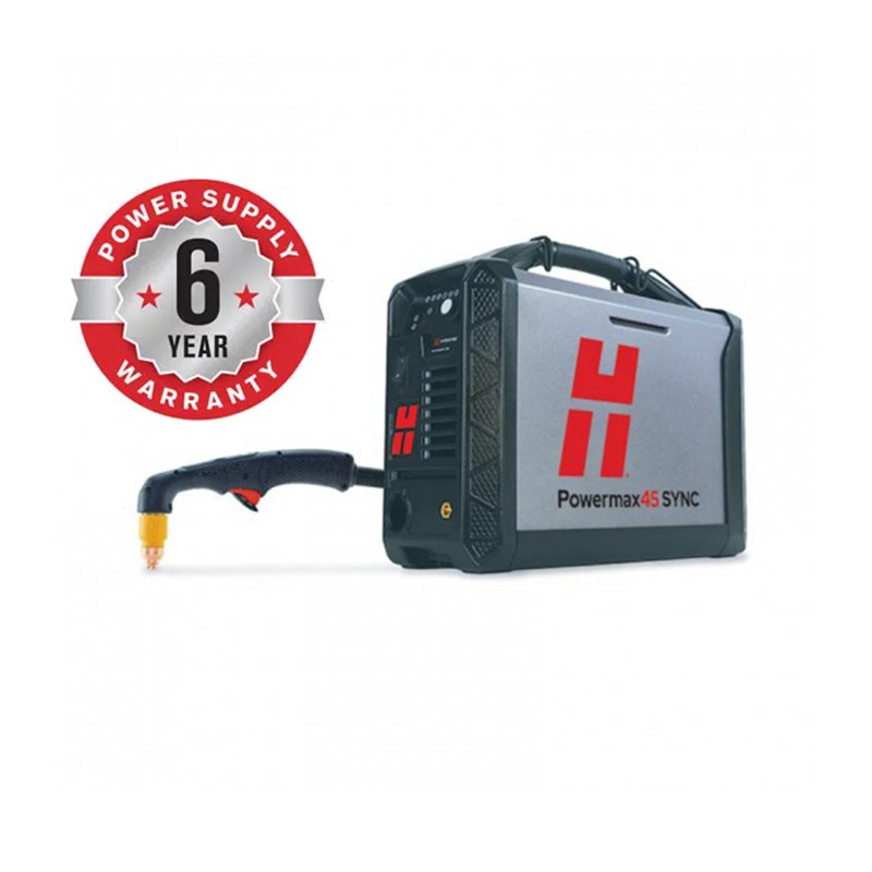 Découpeur plasma Hypertherm Powermax 45 sync system, 400V triphasé avec torche manuelle 75 degrés et port CPC 088144 ou 088146