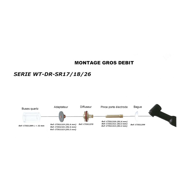 KIT BUSE QUARTZ / PYREX Ø1.6 MM GROS DEBIT LONGUEUR 32MM WT-DR-SR17/18/26 (MONTAGE 5) 15-KIT2-17PY-GD-1.6-DR