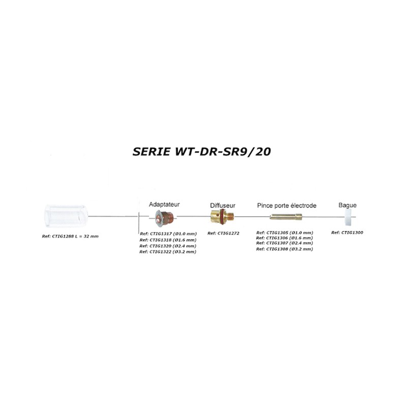 KIT BUSE QUARTZ / PYREX Ø1.6 MM LONGUEUR 47MM WT-DR-SR9/20 (MONTAGE 1) 15-KIT2-9PY-47-1.6-DR