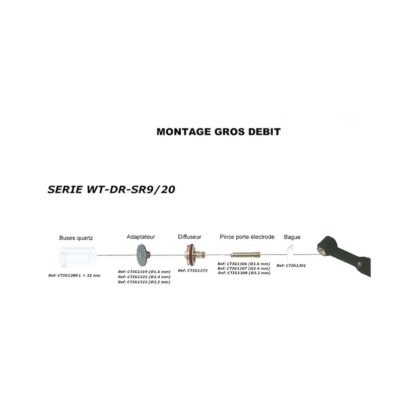 KIT BUSE QUARTZ / PYREX Ø1.6 MM GROS DEBIT LONGUEUR 32MM WT-DR-SR9/20 (MONTAGE 4) 15-KIT2-9PY-GD-1.6-DR