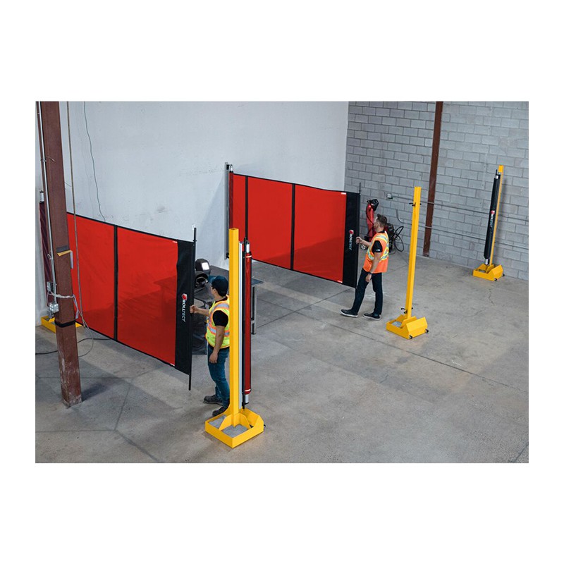 Les écrans de soudage rétractables sont conçus dans un souci de polyvalence et de sécurité. Ils sont portables, légers et incroyablement durables, ce qui les rend adaptés à une grande variété d'espaces de travail. Ces écrans autonomes sont équipés d'un châssis à roulettes, ce qui facilite leur déplacement. Ils éliminent la nécessité de manipuler des protections fixes volumineuses, qui demandent beaucoup de main-d'œuvre, et permettent aux chariots élévateurs d'accéder rapidement à la cellule de travail. De plus, ils offrent une protection robuste contre les risques liés au soudage, tels que les étincelles, la chaleur, les rayons ultraviolets et les projections de débris.